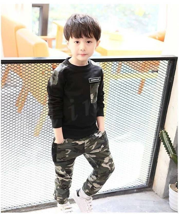 Introducing our Army Printed Track Pant & T-Shirt Set for Boys, crafted with a comfortable and durable LYCRA blend fabric. The set features a stylish printed pattern, making it perfect for parties and special occasions. Designed for Western wear, this set offers both style and comfort. The fabric is easy to care for with regular machine wash. Each set includes 1 track pant and 1 t-shirt, providing a complete outfit for your little one.