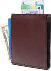 Jungler RFID Blocking Minimalist Genuine Leather Minimalist Wallet Slim Front Pocket Card Wallet Credit Card Holder With Note Compartment 8 Card Holder (Set of 1, Brown)