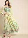 Rayon Blend Stitched Flared/A-line Gown (Yellow)