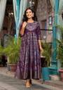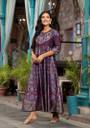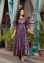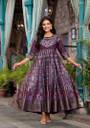 Plum Ethnic Motif-Printed Santoon Dress With Thread And Zari Work. Panelled And A-Line With An Ankle-Length Fit-And-Flare Silhouette, Featuring A Round Neck, Three-Quarter Regular Sleeves, And Adorned With Sequins And Tassels For A Graceful Touch.