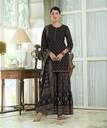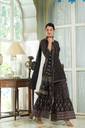 An attire enough to boost up your ethnic collection, made of georgette fabric. The kurta is black in color with ajrakh foil print and santoon lining along with sharara and dupatta. The kurta is detailed with round neck loop buttons while ensuring a comfort fit. Made of breathable georgette fabric , this kurta set is perfect for any occasion.