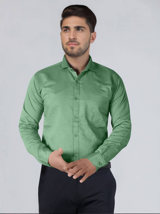 JUST BLACK Men Solid Formal Green Shirt