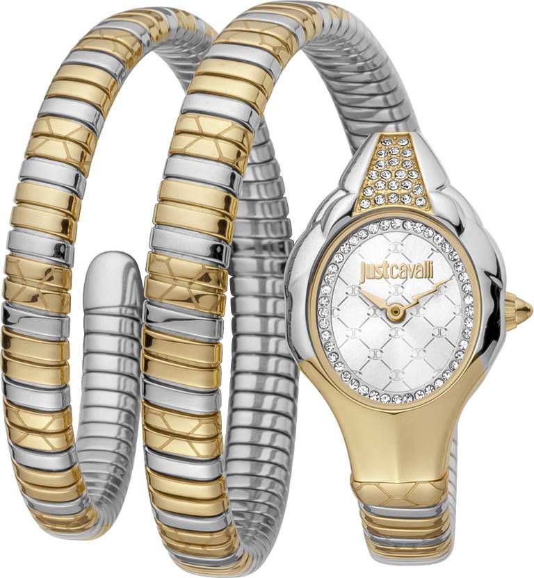 Lending a contemporary twist to an elegant design, this women's analog watch from the Snake collection by Just Cavalli. The silver dial is protected by a mineral glass. Besides, it is completed with a bangle clasp to ensure a secure fit on the wrist.
