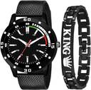 NEW STYLISH DIAL- PU STRAP & BLACK KING BRACELET COMBO SET FOR MEN Analog Watch