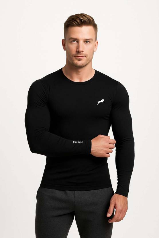 Solids, Full Sleeves T-Shirt, Athleisure, Performance/ Activewear Tees, Brand Logo Tee