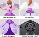 Angel Girl Doll encourages your child to follow, promoting interaction, encourages develops gross motor skills, observed coordination visual-special skills and hand eye coordination, Dancing Rotating and Flower Skirt Blossoming, Rolling and Dancing, along with the beautiful lights and love, the toys features makes it an ever forever fun toy for kids