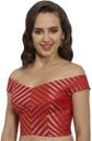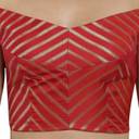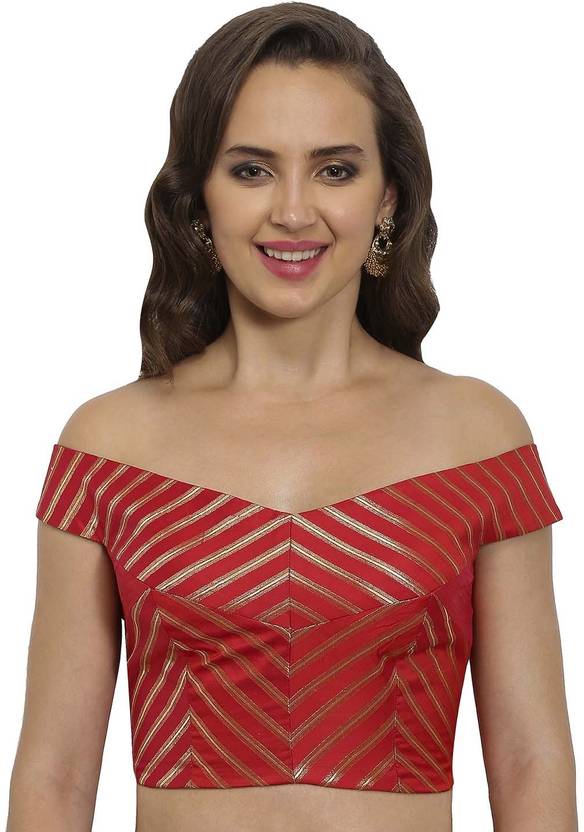 Perk up your style quotient with this bardot brocade stripe blouse. Pair it up with a maxi skirt or a saree to look your best. Off shoulder. Side invisible zipper for fastening. Striped brocade. Non-Padded. Actual colors may slightly vary due to photographic effects.Dry Clean only.
