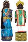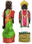 justhandmade Marapachi Bommai Wooden Dolls | Golu Bommai |Raja Rani Dolls Decorative Showpiece - 33 cm (Wood, Green)