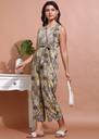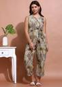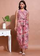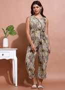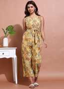 Stay effortlessly chic with this stylish women’s jumpsuit, crafted from lightweight crepe fabric that offers both comfort and elegance. Designed with a flattering V-neckline and a sleeveless cut, it enhances your modern look while keeping you cool and breezy all day. The attached belted waist tie accentuates your shape, while the relaxed straight-fit silhouette ensures freedom of movement.