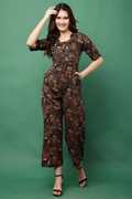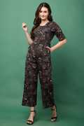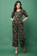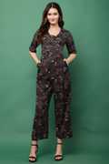 Upgrade your wardrobe with this stylish and trendy printed jumpsuit for women. Designed for both casual and party wear, this one-piece outfit blends comfort with fashion. Made from lightweight, breathable fabric, it ensures a flattering fit while keeping you comfortable all day long. Featuring a modern print, convenient pockets, and half sleeves, this jumpsuit is perfect for brunch dates, vacations, and evening outings. Pair it with heels or sneakers for a chic look.