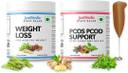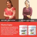 (a) JustVedic PCOS-PCOD Drink Mix consists of a powerful premium drink blend of Himalayan Nettle (very rare) from Uttarakhand, Mighty Ginger from Orissa, Cassia cinnamon from Meghalaya, Krishna Tulsi from Sasangir, Foenum Graecum Fenugreek (handpicked) from Rajasthan, Turmeric Curcumin Longa (premium variety) sourced from farmers in Andhra Pradesh, Fennel from Gujrat and Mentha Spicata Spearmint (rare form and only found in East India) from West Bengal. This PCOS herbal drink has 18 essential Vitamins and Minerals that nourish the hormones. JustVedic PCOS drink contains no preservatives, no artificial flavors, and is 100% Vegetarian. (b) JustVedic weight loss Drink Mix consists of a powerful Ayurvedic blend of Green tea leaves from Assam, Hibiscus Sabdariffa variety from farmlands in Mysore, mighty ginger from Orissa, Meghalayan cinnamon, Krishna Tulsi from Sasangir, Foenum Graecum Fenugreek from Rajasthan, Gujrat Fennel, and Mentha Spicata Spearmint from West Bengal. Handpicked from tea fields in Assam, Green tea leaves assist with fat reduction and improve metabolism. Spearmint, Ginger, and fennel - selected and dried in-house further add to the unique slimming properties of JustVedic PCOS-PCOD Weight Loss Mix Combo. Spearmint and fennel further assist in preventing aging signs and in liver detoxification.Having a pleasant smooth taste, JustVedic PCOS-PCOD Weight Loss Mix Combo helps with reducing hirsutism, boosting metabolism, and purifies the body of toxins and waste. Being hundred percent natural we don't have flavors for PCOS tea drinks, as flavors would mean artificial ingredients. JustVedic PCOS-PCOD Weight Loss Mix Combo helps with releasing excess water weight and purifies the body of toxins and waste. JustVedic PCOS-PCOD Weight Loss Mix Combo also reduces cravings for sugar and removes extra fat. Moreover, the natural mildly sweet taste of the tea is amazingly soothing to the senses. The sun-soaked golden color of our JustVedic PCOS-PCOD Weight Loss Mix Combo is full of sweetness and warmth offering ecstasy with each sip.