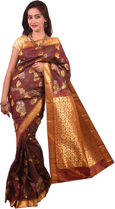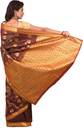 Printed Kanjivaram Handloom Silk Blend Saree (Gold, Maroon)