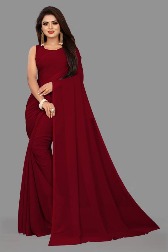 JV ENTERPRISE Striped Bollywood Chiffon Saree (Maroon)