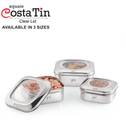 Package Contains - 1 PC Square Shape Large Costa Tin With See Through Lid Material - Stainless Steel Lid - See Through Lid This Tin is Easy To Clean, Safe to Use Best for Laddu, Dryfruits, Chocolates