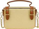 Elevate your style with this gold glitter sling handbag, crafted for women who love a perfect balance of elegance and functionality. Designed with a shimmering gold body, sturdy brown PU leather straps, and a detachable golden chain, this bag complements both casual and festive outfits effortlessly. Its structured silhouette offers durability, while the compact size makes it lightweight and easy to carry. Perfect for parties, weddings, festive events, or everyday chic looks, this handbag is not just an accessory but a fashion statement. Whether you pair it with traditional attire or western outfits, it enhances your look with timeless sophistication.