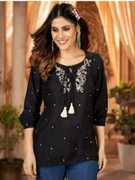 Trendy Women Printed Straight Short Kurta MATERIAL: Rayon; PRODUCT KURTI LENGTH: Short Length (Kurti 28 Inches ) Package Contents: 1 Short Kurta STYLE & PATTERN: Printed Kurta; NECK STYLE: round -Neck; SLEEVE TYPE: 3/4 Sleeves; OCCASION: Casual & Formal