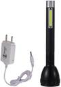 The flashlight comes with an in-built Aluminium reflector situated within the torch. The reflector enhances the beam of light produced and gives a brighter focus. The cord required for charging is provided with the torch for easy charging whenever needed. The button needed to switch the flashlight on or off comes at the rear side of the handle. This button can be pressed alternately for lighting the main light beam and the emergency light beam.