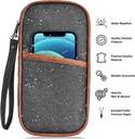 This Grey & Tan Color OG07 Travel Document Organizer comes with Detachable Wristlet band (20cm), It's easy to carry your family's needful documnets like... 4 Travel Passport + 4 ID / Bank Cards + Currency Compartment (Zip) + Bording Pass / Cheque Book + Pen + Phone (Outside Front Pocket) + Keys (Zip) + Coins (Zip) & Small Gadgets (Zip). The inside of the Organizer is as important as the outside, hence we use top quality Lilen PVC Coated Material, it's Robust, Durable & Water Repellent & It is a perfect gifting solution for all age groups Travel Lovers. It's Typically Bi-Fold Type handcrafted Organizer.