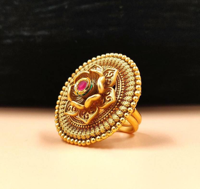 JYONA Rajwadi Gold Plated Adjustable Finger Ring For Women & Girls