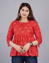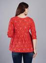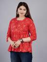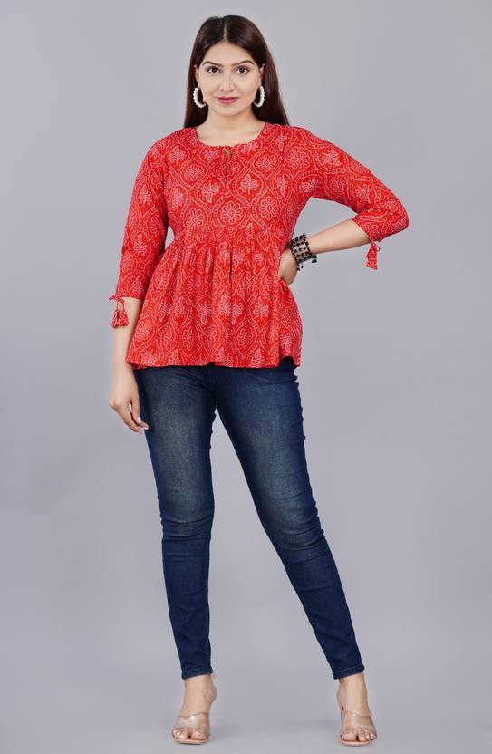Women Bandej Print Red Color Regular top,Tie-up neck,3/4 Sleeves,Length 26 Inches,Rayon Fabric,Tie-up Sleeves.