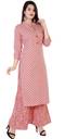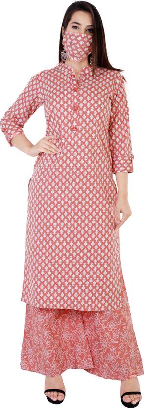 Beautiful Peach Color Printed Kurti & Palazzo with matching Antidust Face Cover