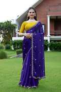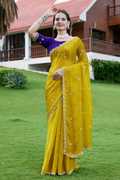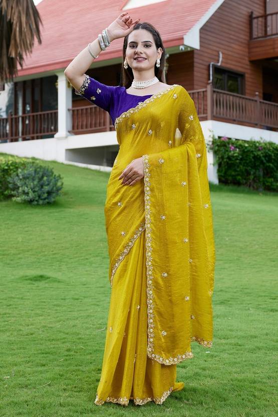 K 5 FASHION Embroidered Bollywood Jimmy choo Saree (Yellow)