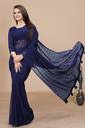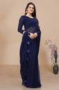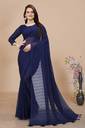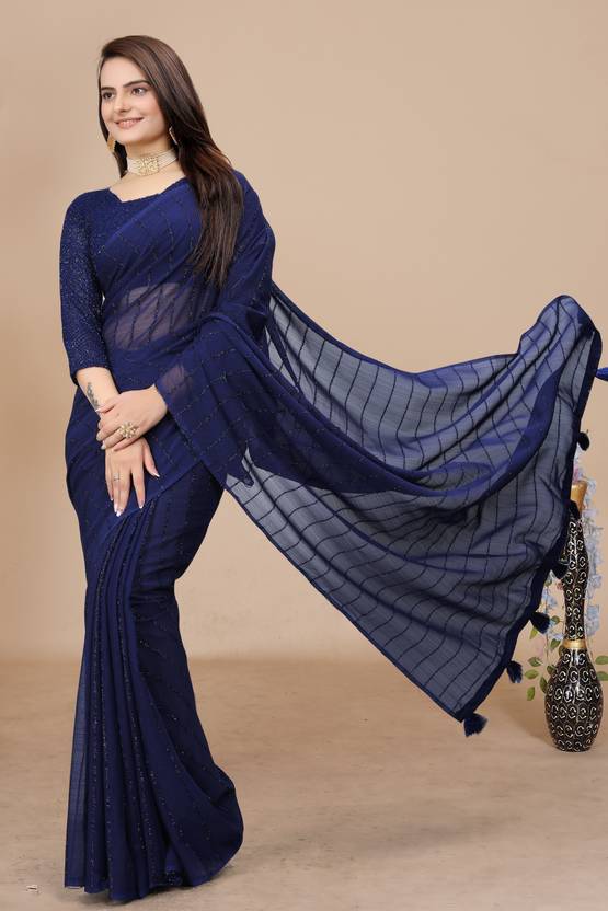 K 5 FASHION Self Design, Striped, Dyed Bollywood Chiffon Saree (Dark Blue)