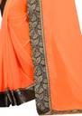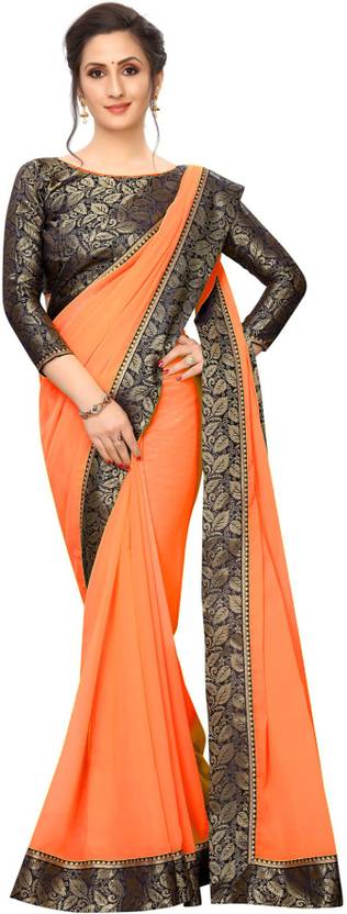 K.C Solid/Plain Bollywood Cotton Blend Saree (Blue, Orange)