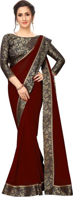 K.C Solid/Plain Bollywood Georgette Saree (Brown, Blue)