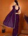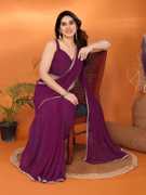 Ready to Wear Solid/Plain Bollywood Satin Saree (Purple)