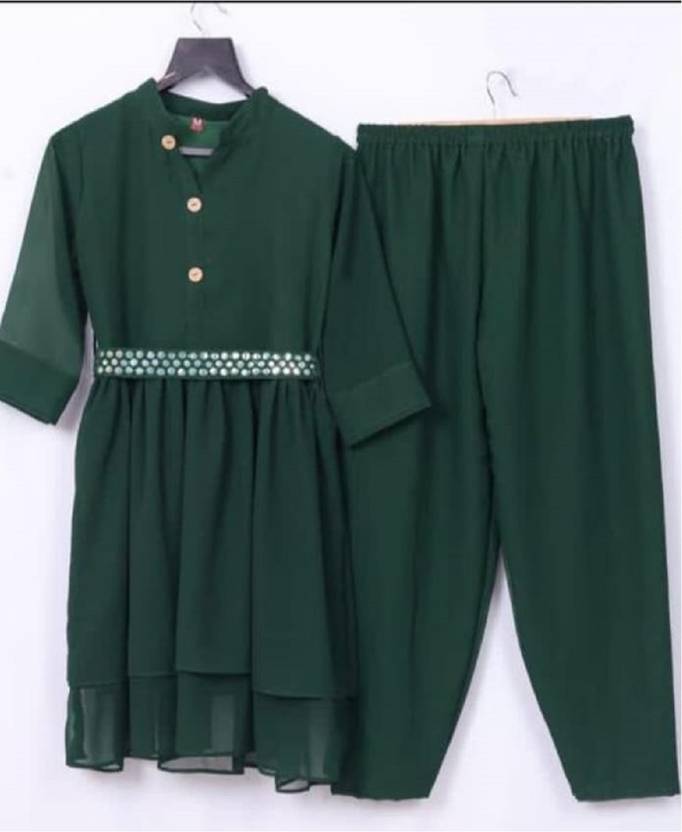 K D F Women A-line Dark Green Above Knee/Mid Thigh Length Dress