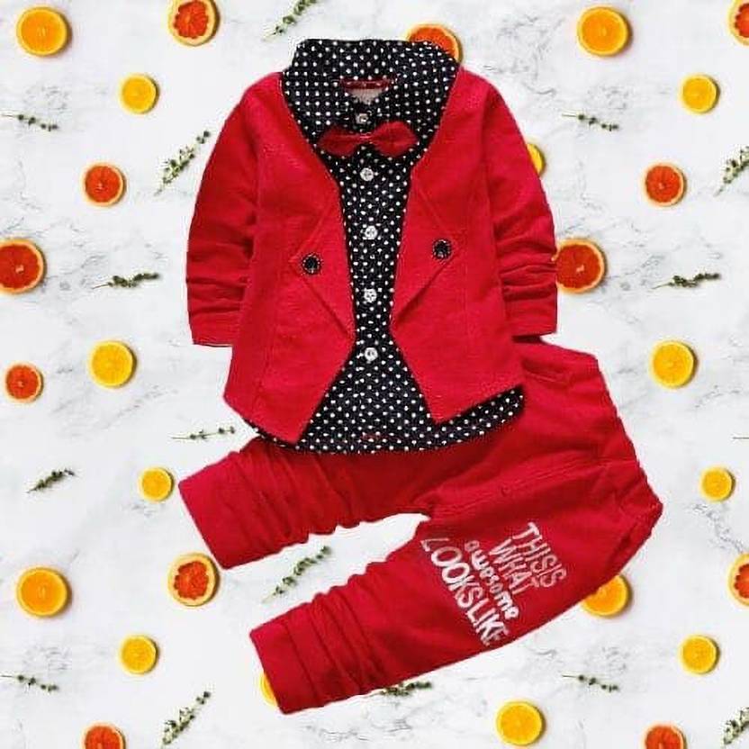 k d fab Boys Party(Festive) Shirt Pant, Jacket, Bow Tie (RED)