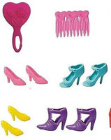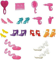 Thanks to this complete kids' doll set, your little one receives a fashionable doll with a range of miniature accessories that mimic everyday beauty essentials. These include items like a hair comb, a hand mirror, a brush, a hair dryer, nail polish bottles, high heels, strappy heels, and strappy sandals. This assortment can add variety to playtime while allowing interactive styling and pretend salon experiences.