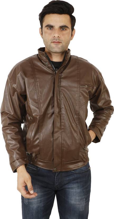 Men Solid Leather Jacket
