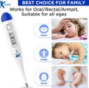 SOUND ALARM: When the testing is complete, the alarm will beep when the reading is complete & it Automatically switches off when the thermometer is not in use, DUAL MODES - Thermometer shows Results in Fahrenheit and Celsius With ± 0.1? accuracy Long press the button to switch between the two modes., FOR ALL AGE GROUPS - It it extremely comfortable for use for all Adults babies & kids and can be used under the Armpit ,Rectal,and oral cavity, ONE BUTTON OPERATION: Thermometer has one Button operation making it very convenient to use and has large Display indicating results upto one decimal