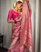 K SALIYA Woven Banarasi Jacquard Saree (Pink)