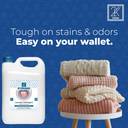 The detergent is made to tackle stains and odours, helping to remove dirt, grease, and food spills from fabric. Whether it’s coffee stains, sweat marks, or everyday dust, the formula works deep into the fibres to lift unwanted spots. It also helps eliminate strong odours, leaving clothes fresh and clean after every wash. The liquid consistency allows it to spread evenly, ensuring that the detergent reaches all areas of the fabric for a thorough cleaning.