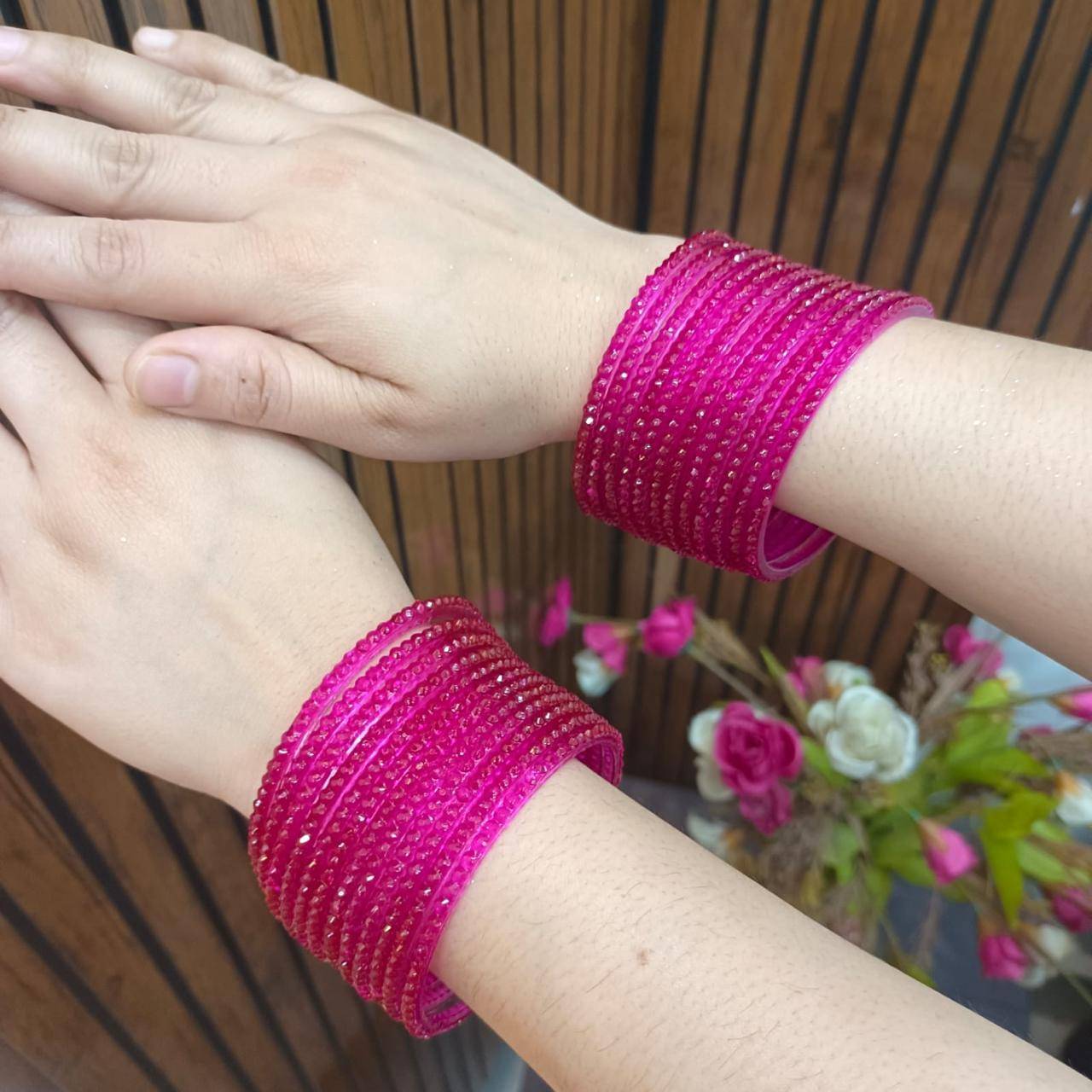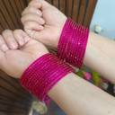 Add a touch of glamour to your ethnic look with the stunning Mehira Sparkle Bangles. Designed with shimmering stone work on a vibrant pink base, these bangles bring out the perfect blend of tradition and modern style. Ideal for festive occasions, weddings, or casual ethnic wear, they add an instant glow to your outfit.