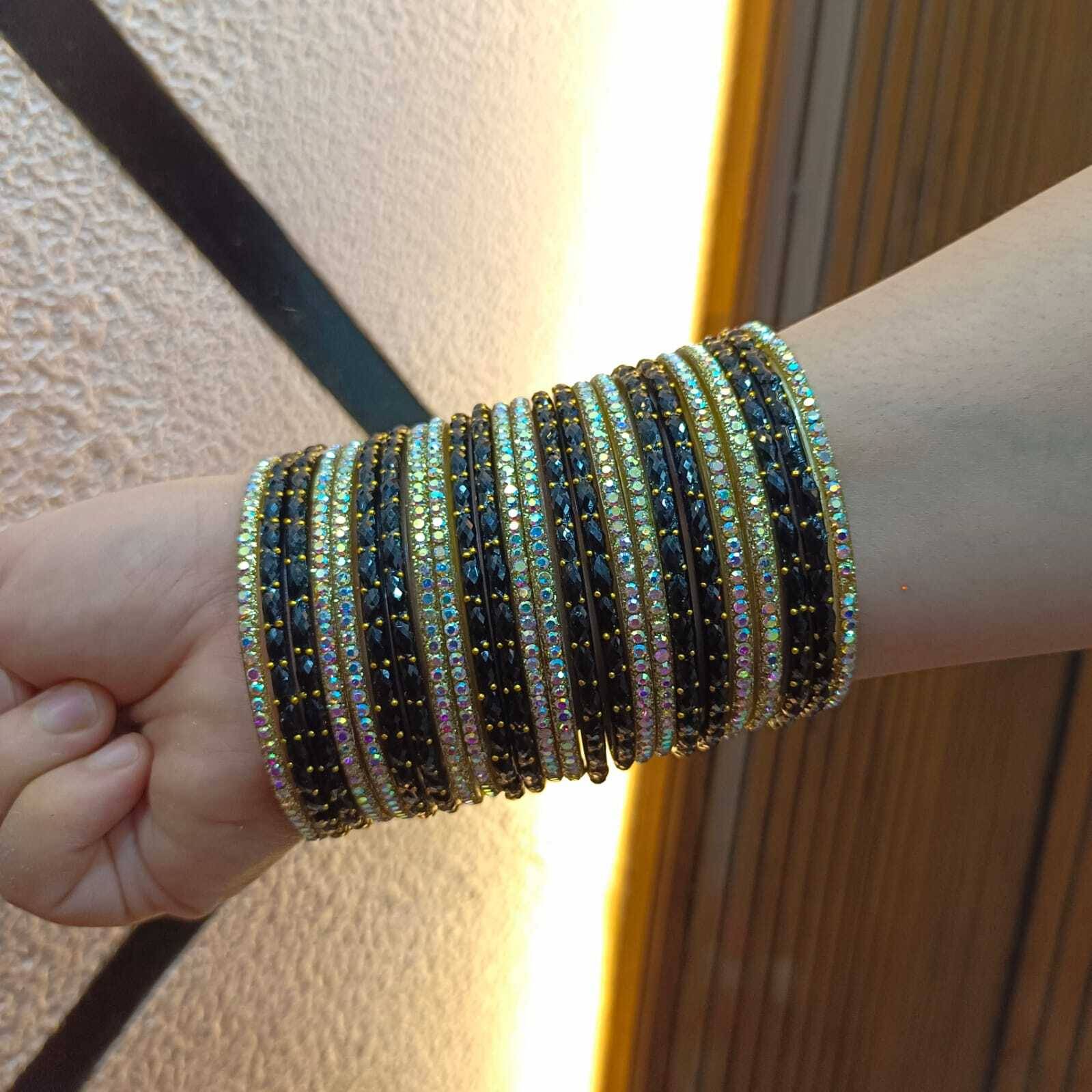 Traditional Glass Bangles Set with Sparkling Stone Work – Women’s Ethnic Jewelry