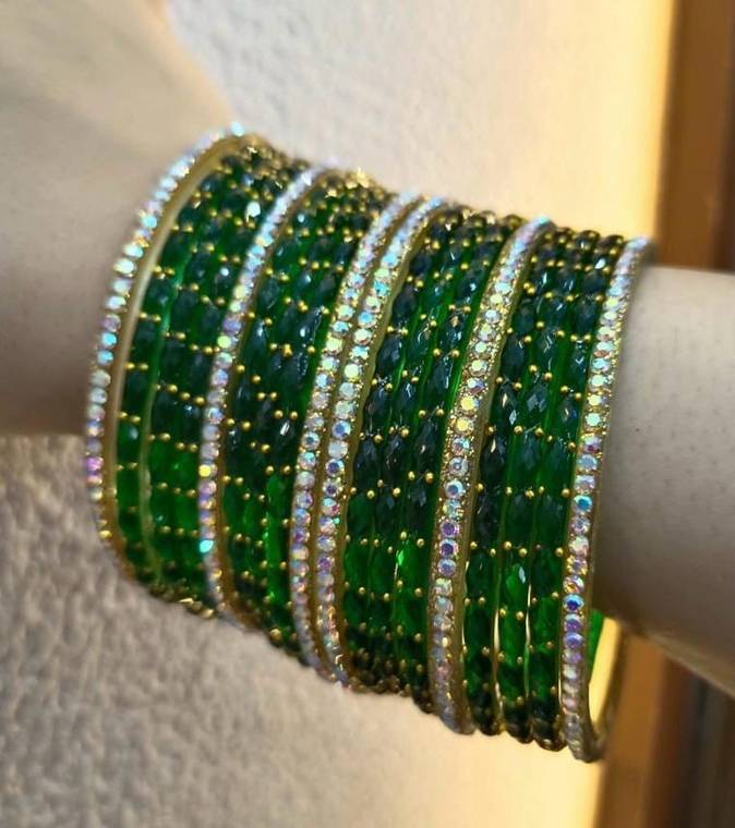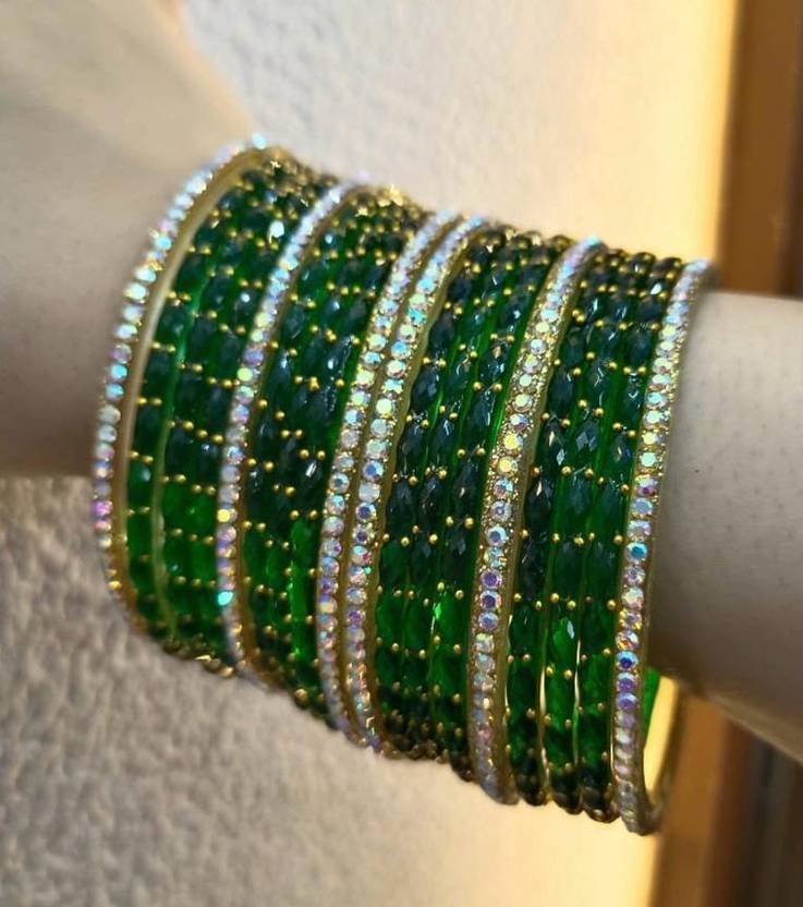 Elegant Green Crystal Stone Studded Metal Bangles Set for Women & Girls – Party Wear/Traditional Jewelry