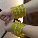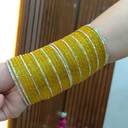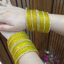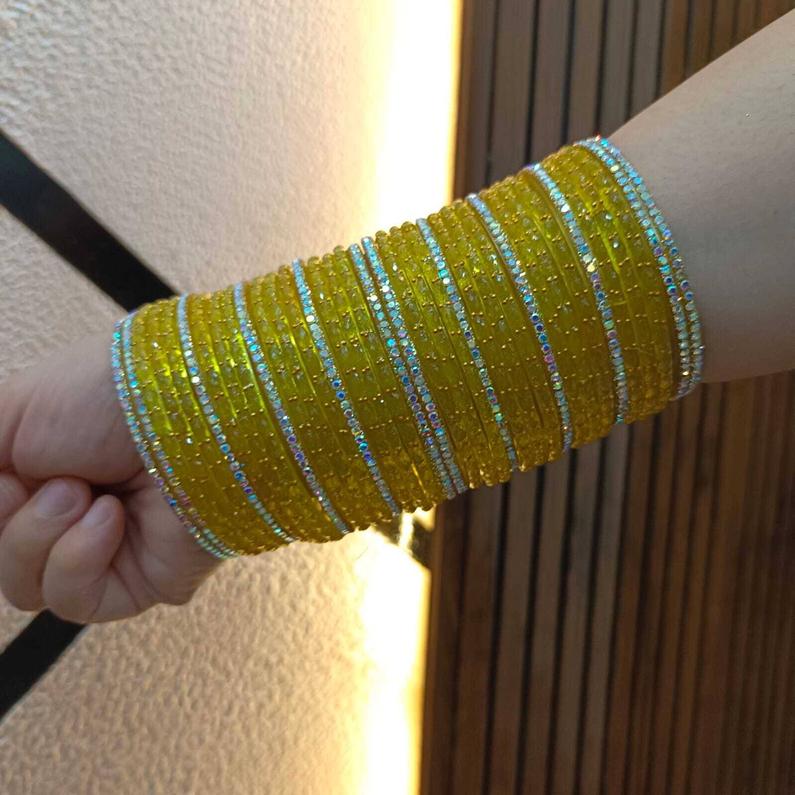 Add a touch of elegance to your traditional attire with this stunning set of yellow glass bangles adorned with shimmering stone work. Perfect for weddings, festivals, parties, and special occasions, these bangles beautifully complement sarees, lehengas, salwar suits, and other ethnic outfits.
