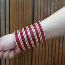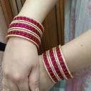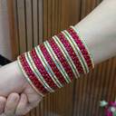 Bring charm and grace to your ethnic look with this beautiful red glass bangle set decorated with sparkling stone embellishments. Perfectly crafted to add a festive touch, these bangles are an ideal choice for weddings, festivals, parties, and other traditional occasions.