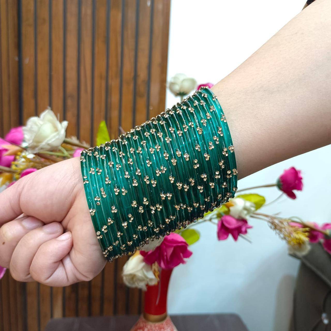Women’s Traditional Glass Bangles with Stone Work | Bridal & Party Wear Chudi Set