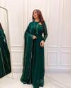 Printed Georgette Stitched Anarkali Gown (Green)