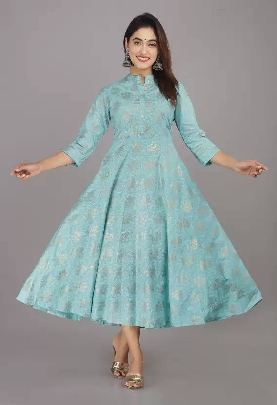 Women Printed Viscose Rayon A-line Kurta (Blue)