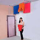 Hang your clothes from ceiling and short in space! Eco friendly less space occupying Kaarq Clotheslines ceiling mounted dryer fulfils comprehensive and convenient way of hanging your clothes in spaces that do not have floor space. Kaarq clotheslines are made of stainless steel pipes, which prevents rusting or oxidation unlike in iron, thus giving it strength and durability! Each individual stainless steel pipe is attached to a pulley for the smooth ascension/dissention, using nylon cord; for hanging them separately as needed. Due to its elite and compact design it can be installed in various spaces like: Passages, Bedrooms, Bathrooms, Balconies. So the next feature of ours which can be put up in the front row is HOW – Kaarq Eco friendly clotheslines Drying System is useful in residences; hotels; hostels or hospitals? Kaarq uses unique high quality gradient Pulley Driven clotheslines Drying System which is effective in saving time by providing provision for more number of clothes at a reasonably less space consumption, so in one word to say accommodation of more garments in less space. Eco friendly Kaarq clotheslines Drying System is much necessary item of any residence. NOTE:Installation is not included. Sales Package Content: 1) Celing Pulley slates - 2 nos 2) S.S Tubes with nylon ropes - 6 nos 3) wall mounted holder - 1 nos 4) locking cones - 6 nos 5) screws - 10 nos 6) wall plugs - 10 nos. Specifications