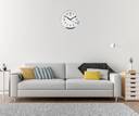 This wall clock comes at a convenient size of 20 cm x 20 cm. This size makes it seem just perfect for a normal-sized living room. Combined with the high-contrast background and black markings that help you tell the time easily, the size of this clock also makes it easy to view the time even if it is hung high up on the wall. But if you like, you can take a table stand and even display this chic clock as a showpiece for a chic and minimalist interior design.