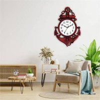 Kadio Analog 39 cm X 26 cm Wall Clock (Brown, With Glass, Standard)