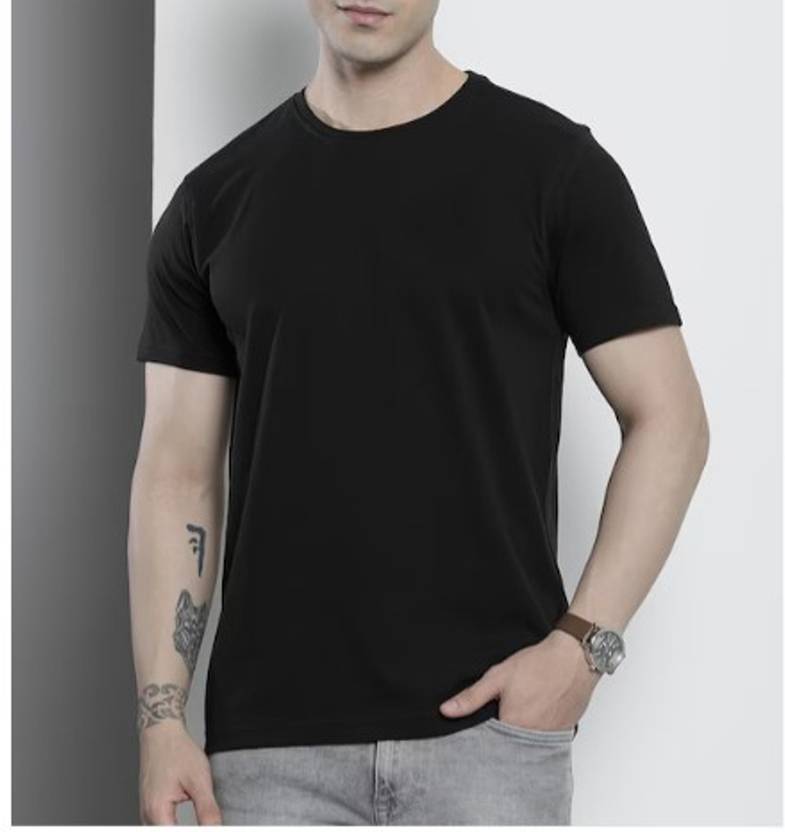 KAEZRI Solid Men Round Neck Black T-Shirt