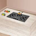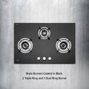 Kaff HBR 783B | Brass Burner | Auto Ignition | Black Tempered Glass | Metal Knobs Glass Manual Hob (3 Burners)
